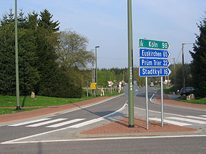 Strasse. Man kann hier in drei Sekunden von Deutschland nach Belgien und wieder