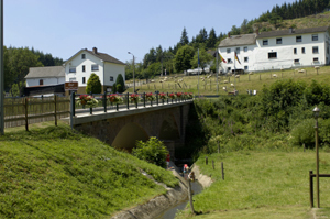 Brücke über die Our verbindet die beiden ehemals zusammen gehörenden Gemeinden