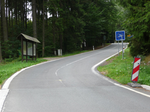 bildet. Links die Straße vom sächsischen Lückendorf zur Grenze, rechts die Straße