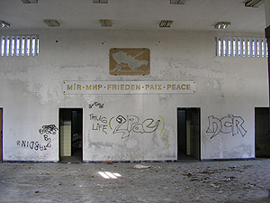 deutschem Gebiet zusammengelegt. Die Schrift an der Wand der einstigen Schalterhalle