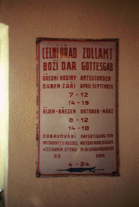 Schild über die "Amtsstunden" des Zollamtes Gottesgab befindet