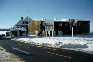 Bild zeigt den noch tief verschneiten Grenzübergang Ferdinandsthal bei Bayerisch