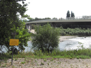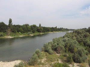 Am Fluss entlang verläuft ein sehr schöner Fahrradweg beidseits. Die Grenze