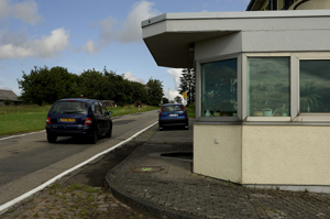 Seiten stehen etwas verloren die rot-weißen Schranken am Straßenrand und man