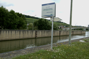 verläuft hier im alten Rhein-Fluss. Der schiffbare Rhein-Kanal ist auf der
