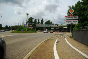 Grenzübergang Kehl-Strasbourg auf französischer Seite. Normalerweise fahre ich