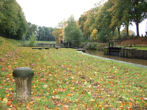 über 6 Schleusen und 10 Zugbrücken, die aber nicht mehr alle erhalten sind.