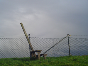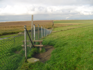 dem Zaun liegt,der in das Dollard/Dollart verläuft. Auf den Deich können Fussgänger