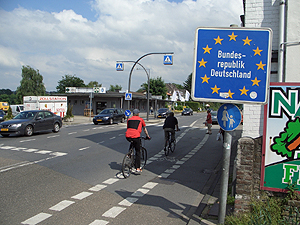 völlig unspektakulärer Grenzübergang in die Niederlande. Am Grenzübergang befindet