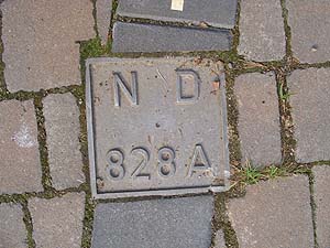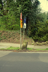 Grenzstein beginnt ein anderer Straßenbelag der sich über die Reifen in das