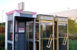 und polnische Telefonhäuschen stehen hier an der A4 am deutschen Neisseufer