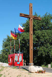polnischen Flussufer steht seit 2001 ein Kreuz mit polnischer und deutscher